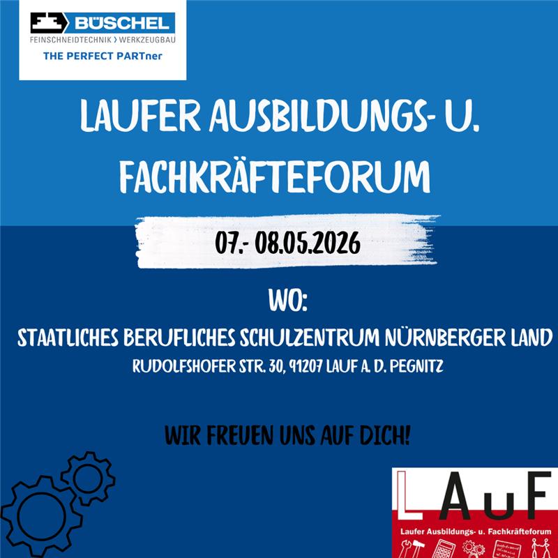 Am 07. und 08. Mai 2026 sind wir auf dem Laufer Ausbildungs- und Fachkräfteforum im Staatlichen Beruflichen Schulzentrum Nürnberger Land vertreten. 💪💙